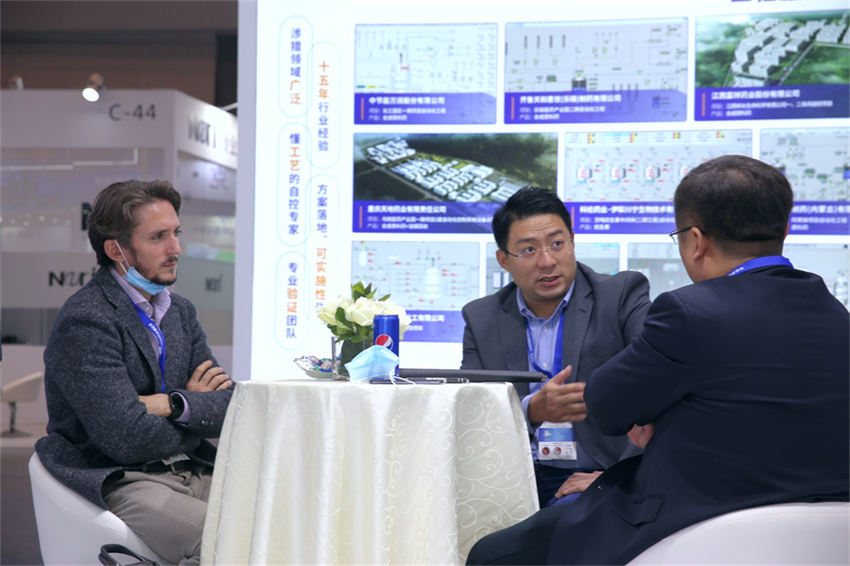 此次國際展區云集了多家國內外知名自動化工程服務提供商同臺競技。天俱時結合自身多年自控工程經驗,精心準備了化學合成原料藥工藝過程自動化三維演示視頻,選取典型的控制單元設計,包含溶解、萃取分相、濃縮、結晶單元半自動控制以及通過BATCH實現多品種、全自動控制演示;通過專業工程師的精彩講解,向市場傳遞了天俱時自動化工程服務領軍者的最強音。